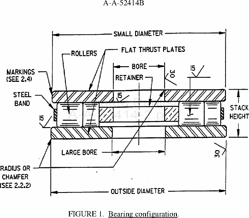 2.3 Surfaces. The surfaces labeled 15 and 30 in figure 1 shall have a maximum surface roughness of 15 and 30 microinches, respectively. Ground surfaces shall be free from tool marks, chatter waves, pits, rust or other injurious defects. All other surfaces shall have a smooth machine finish, free from scale. The bearings shall be supplied without lubrication, but with a coating of rust preventive film.